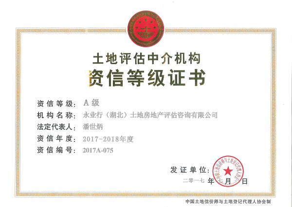 土地评估中介机构资信等级A级